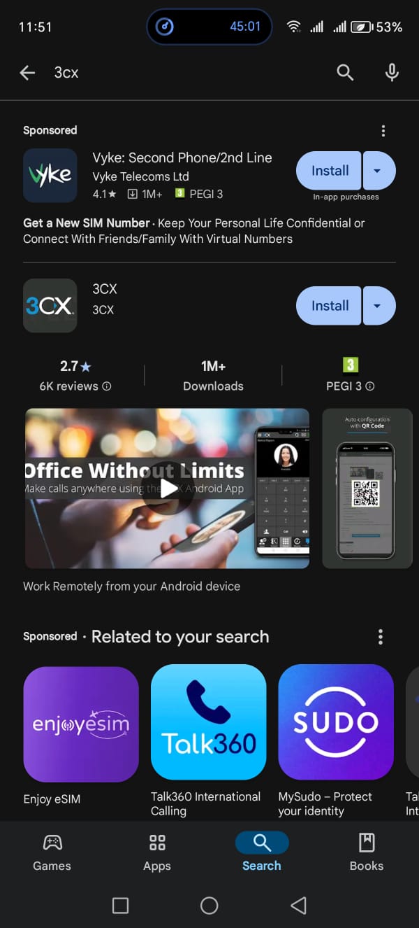 Click install or download on the 3CX App.