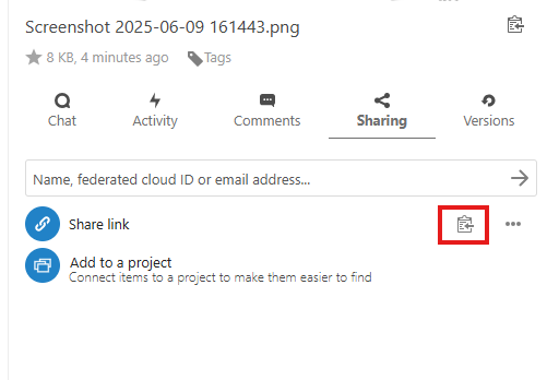 A similar menu will appear on your screen. Find Share link and click the clipboard icon to copy the link of the file.