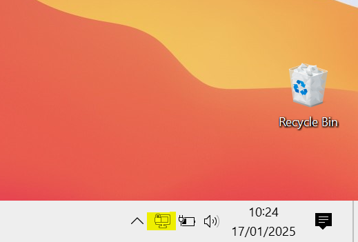 Once OpenVPN has started a desktop icon with lock should appear bottom right of your screen. If you are unable to see it, navigate to the up-arrow menu icons and drag it down to the taskbar. Right Click the icon to open the OpenVPN Menu.