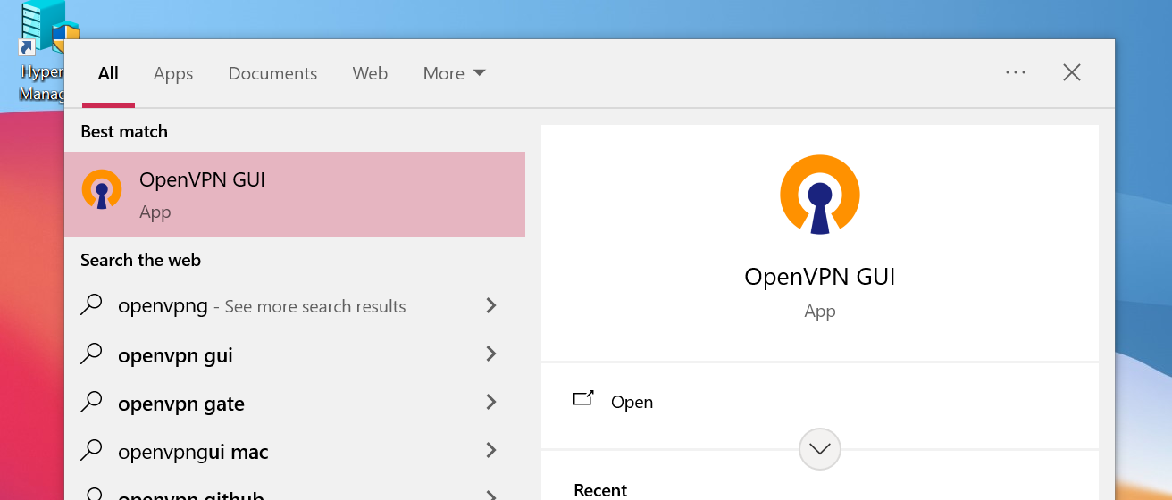 Type OpenVPN in the search bar, then press Enter to open it.