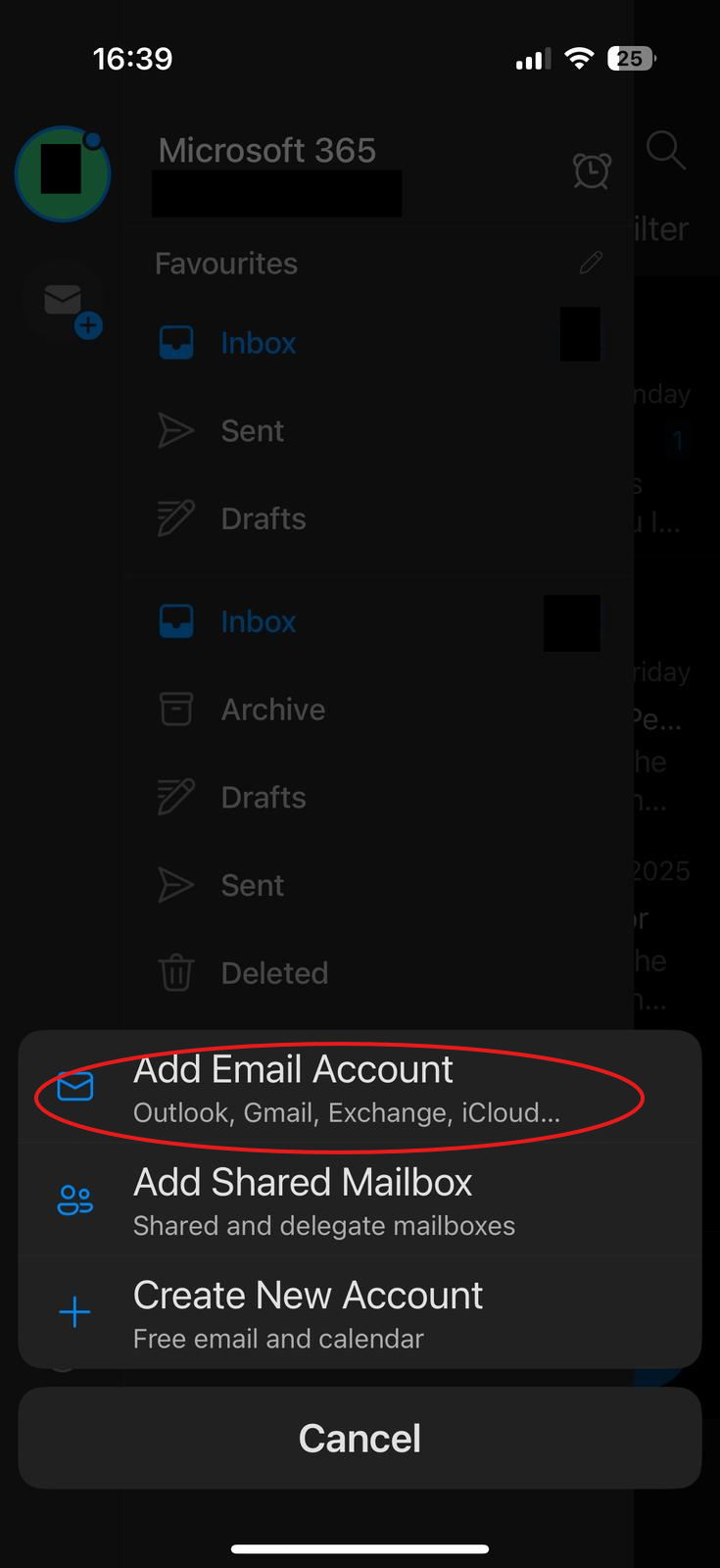 Outlook: Adding a new Mailbox (iPhone)