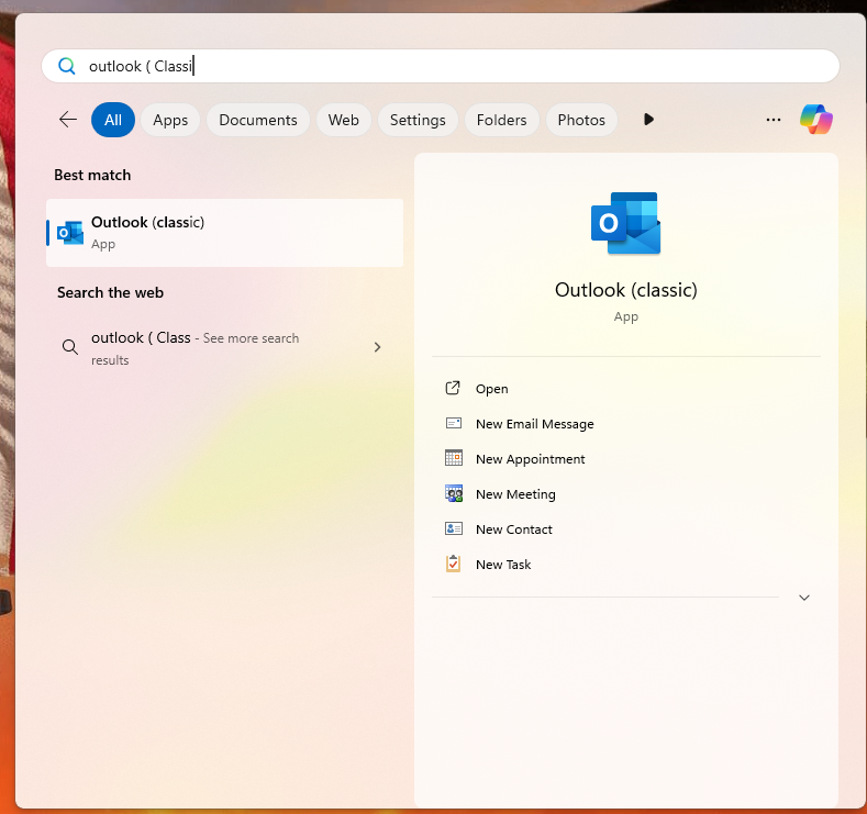1. Open Outlook app (Classic)