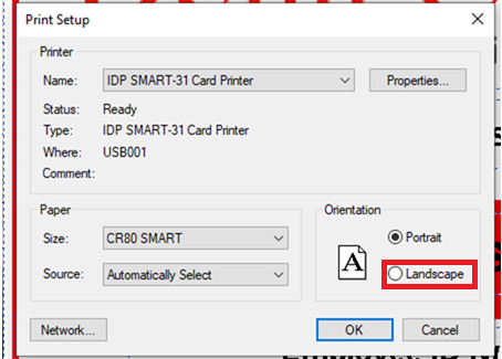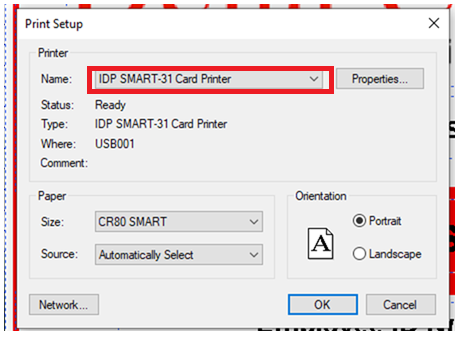 From the drop down menu choose the IDP SMART 31 Card Printer, then click okay.